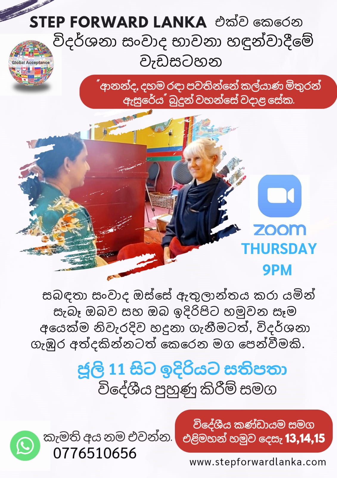 Lectures,Discussions,Follow ups,Exercises for 5 months Fee Rs 1000/= per month Start Date: Jan 21- 9pm – ZOOM Register before Jan 18th whatsApp your name 0776510656