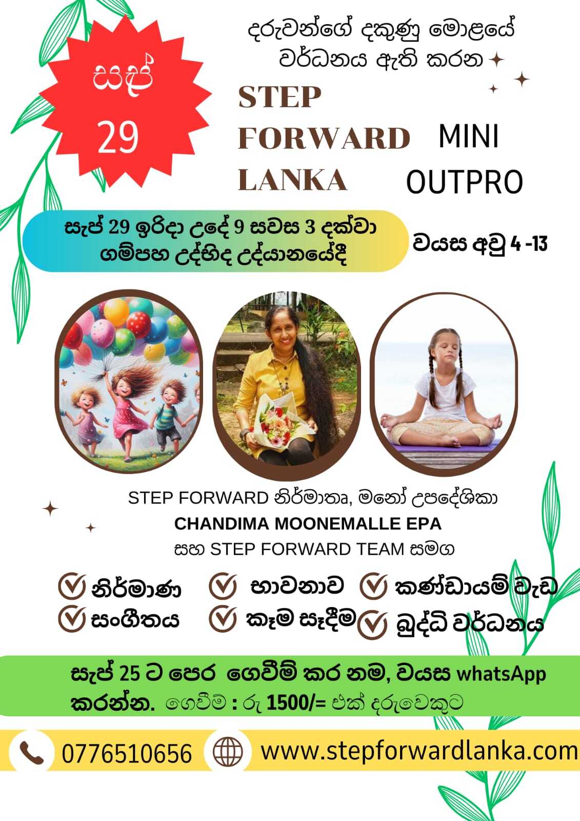 STEP FORWARD Mini Outpro වැඩසටහන – සැප් 29 ඉරිදා ගම්පහ උද්භිද උද්යානයේදීයි